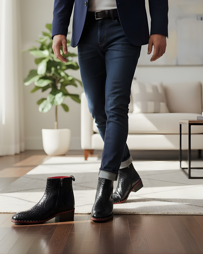 Step into timeless elegance with Black Billion Marco Black Cuban Heel Designer Chelsea Boot With Silver Stud. Designed with a sleek silhouette Tunit (sheet) sole and premium craftsmanship, celebrity choice boot offer a perfect balance of sophistication and comfort. Ideal for Party wear, Clubbing meetings, and Special occasions, they deliver a sharp look with effortless convenience.