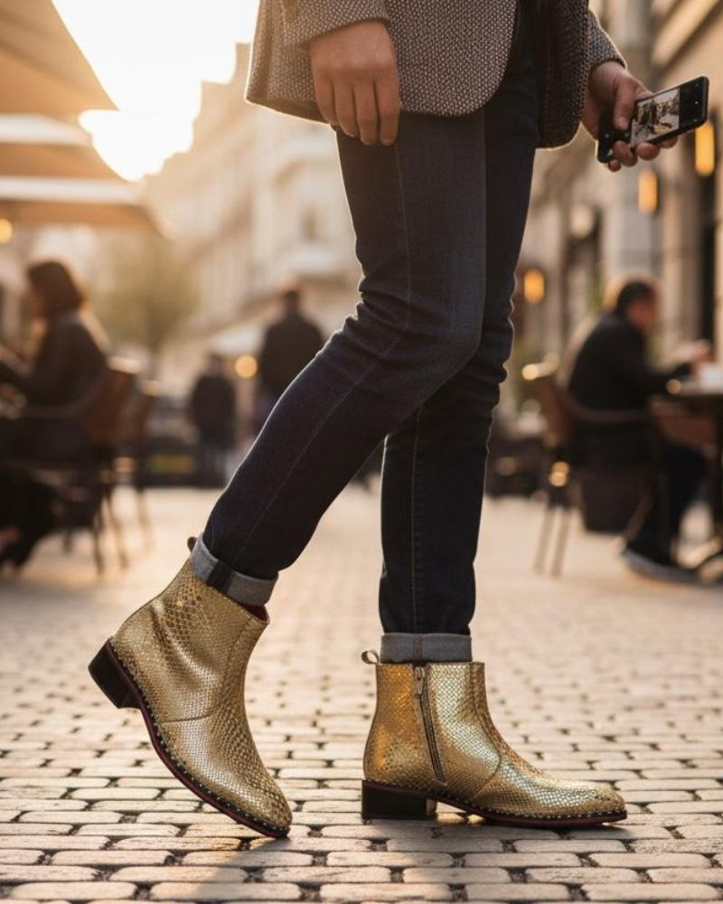 Step into timeless elegance with Black Billion Marco Golden Cuban Heel Designer Chelsea Boot With Silver Stud. Designed with a sleek silhouette Tunit (sheet) sole and premium craftsmanship, celebrity choice boot offer a perfect balance of sophistication and comfort. Ideal for Party wear, Clubbing meetings, and Special occasions, they deliver a sharp look with effortless convenience.