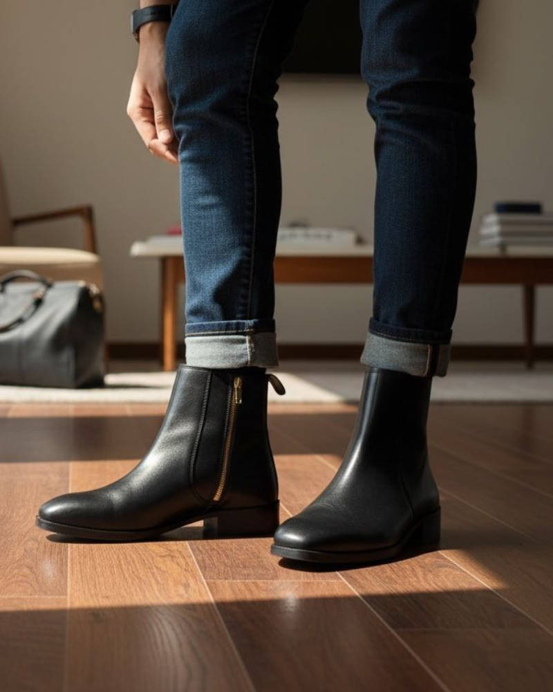 Step into timeless elegance with Regal Black Formal Chelsea Boot. Designed with a sleek silhouette Tunit (sheet) sole with TPR and premium craftsmanship, celebrity choice boot offer a perfect balance of sophistication and comfort. Ideal for Regular wear, Office wear, Commercial meetings, and Special occasions,, they deliver a sharp look with effortless convenience.